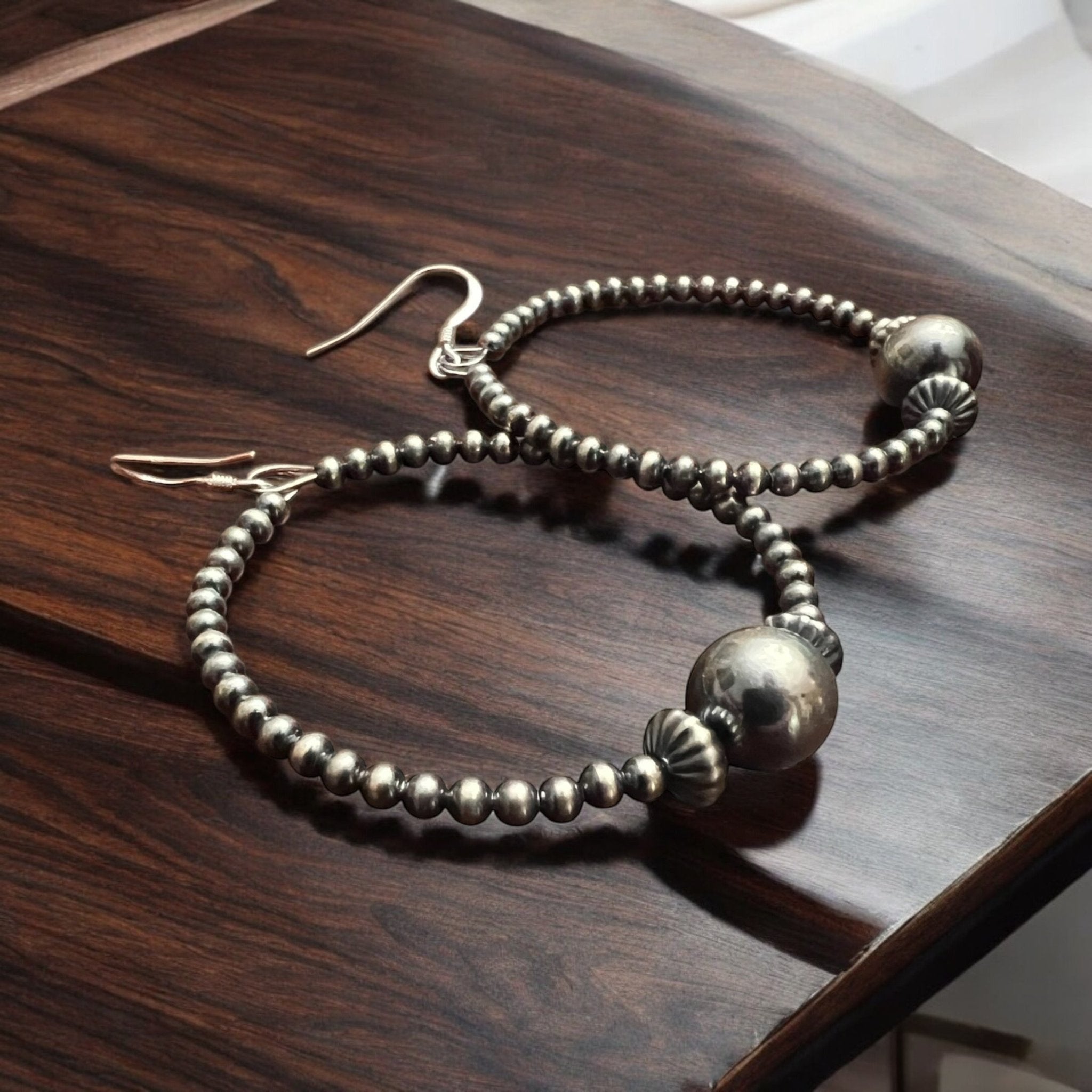 Discover our elegant Sterling Silver Pearl Hoops, showcasing delicate 3mm sterling pearls and saucers alongside a striking 10mm sterling silver pearl. With sterling silver hooks and a 2-inch drop, these earrings add a refined western flair to your look.
