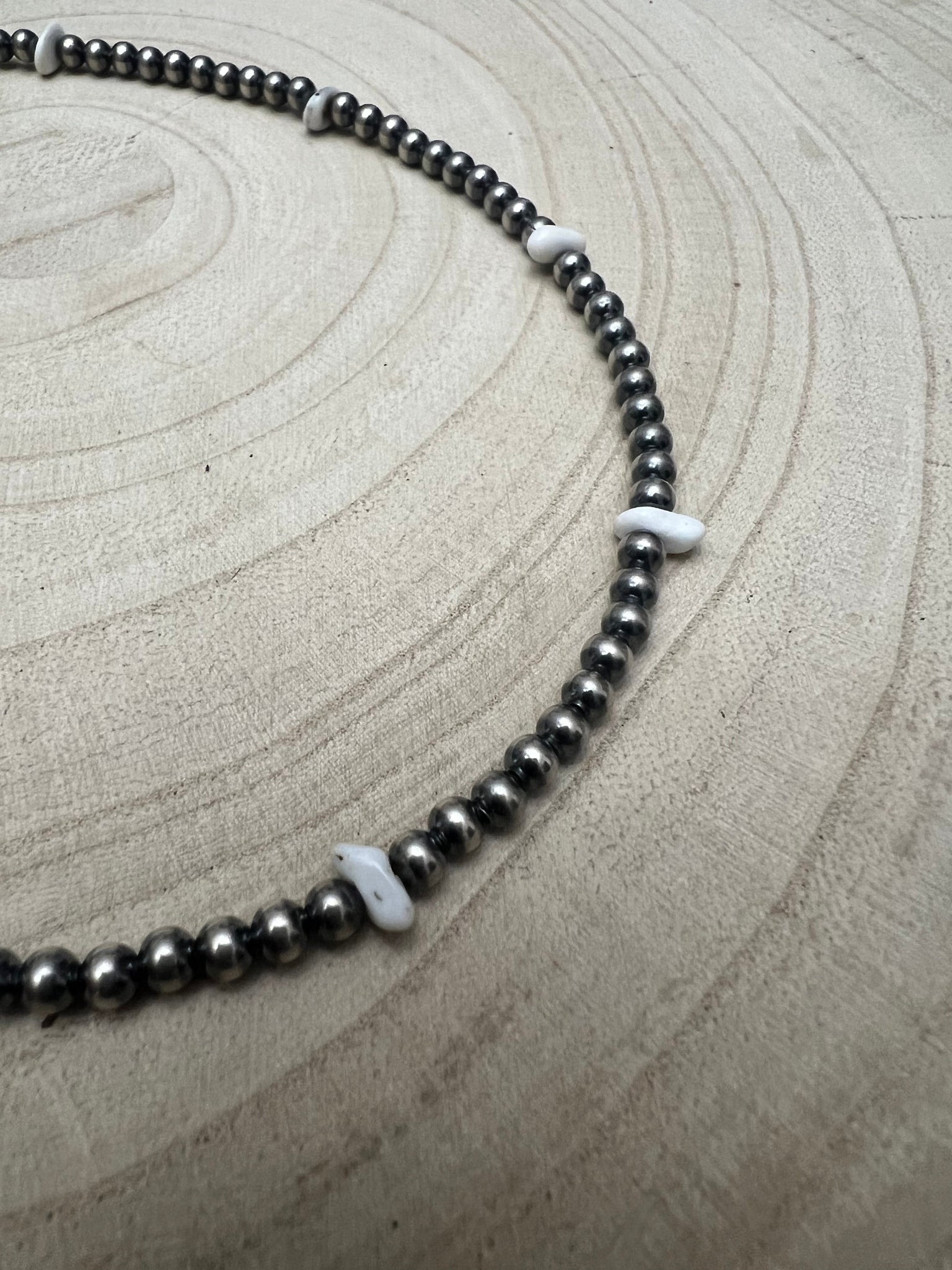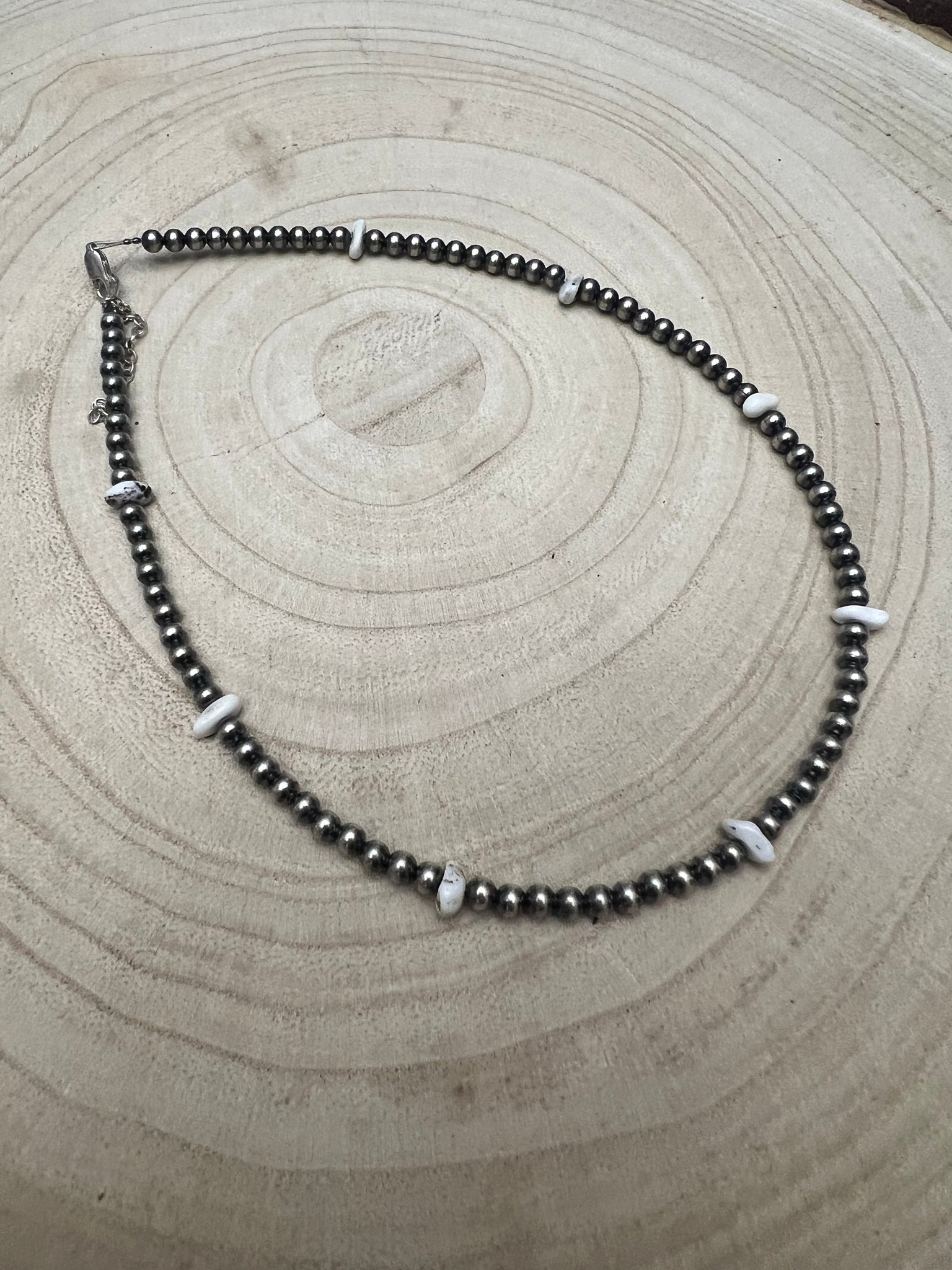 4mm White Buffalo and Sterling Pearl Choker - 14 inch