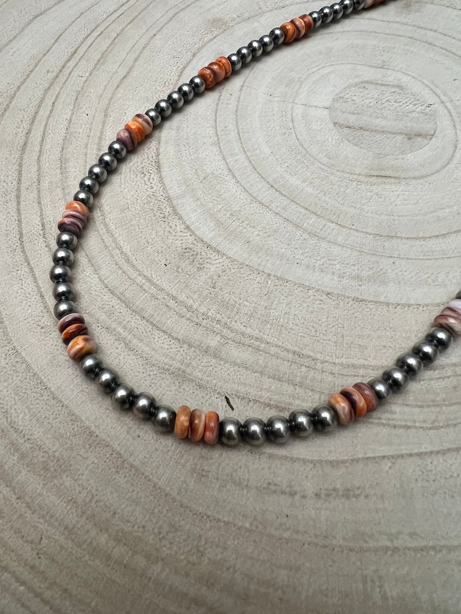 5mm Sterling Pearl and Spiny Oyster necklace - 18 Inch