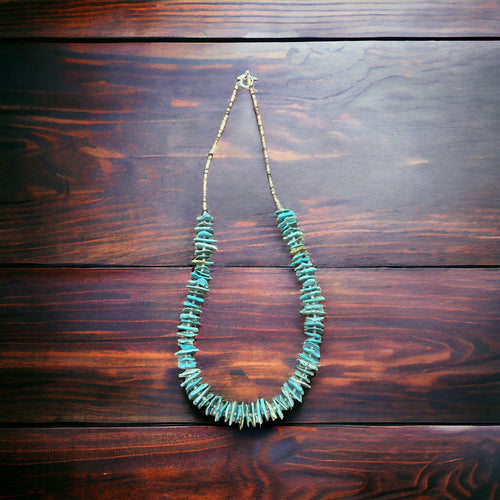 Long Blue Thick Genuine Turquoise Chips Necklace - 26 inch