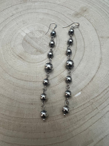Sterling Silver Pearls dangle earrings - 3 1/2 inch drop!