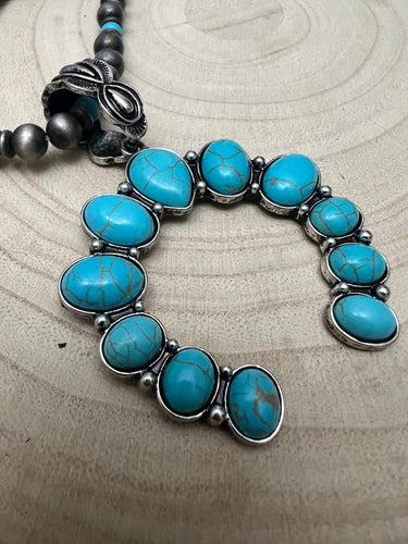 Huge Double Strand Faux Turquoise Squash Blossom Statement Necklace - 32 inch + 3