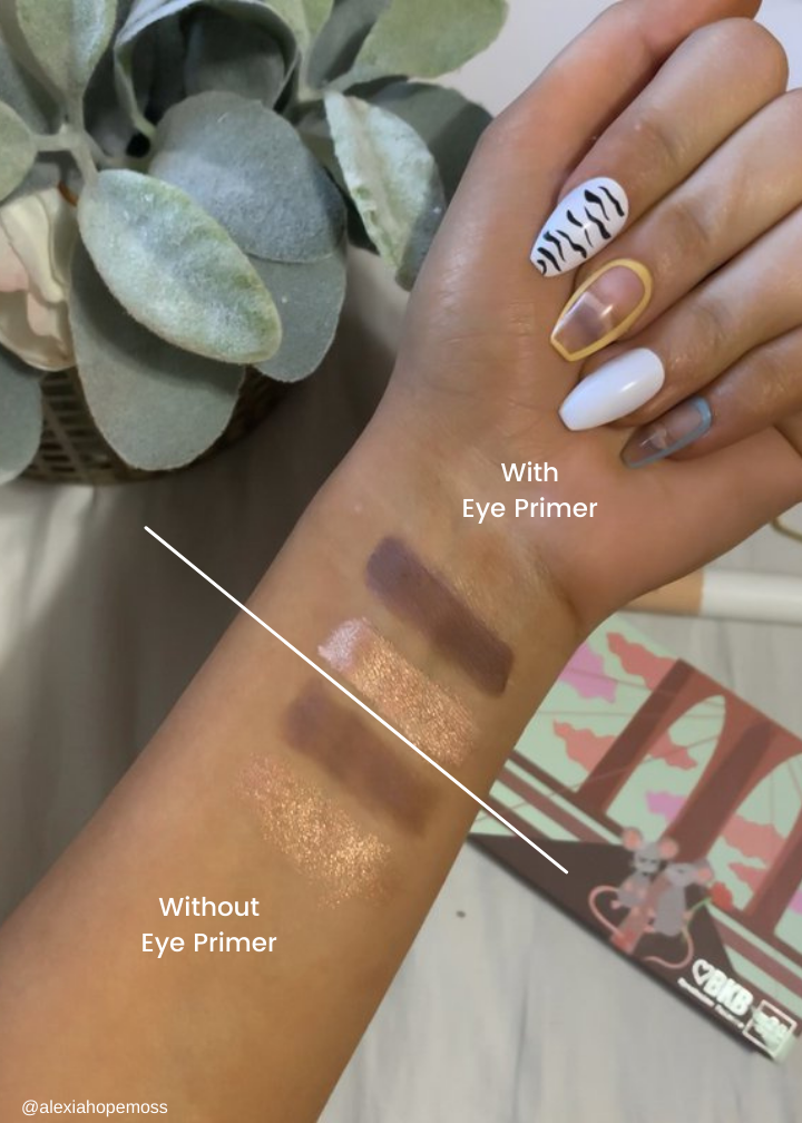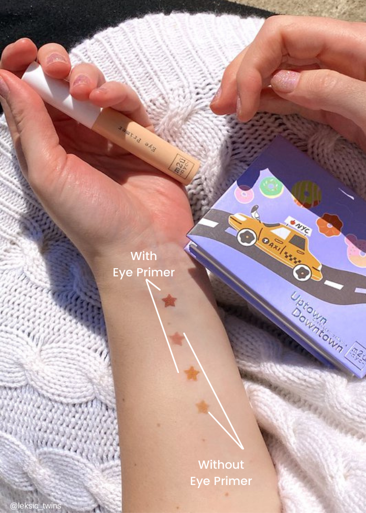 Swipe some eye primer on your eyelids with the doe-foot applicator, blend it with your fingers, and give it a minute to dry. After that, just apply your shadow like normal and watch the magic happen!